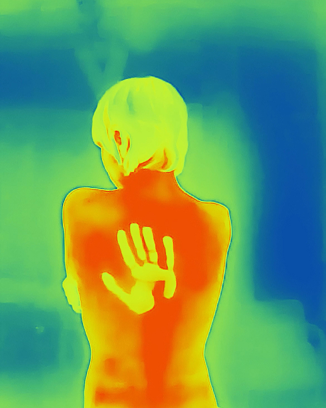 The video piece makes use of both surveillance and thermal imaging and is based on the artist’s personal experience of normative exercise of power in a museum space, asking whether all kinds of bodies have safe access to art.