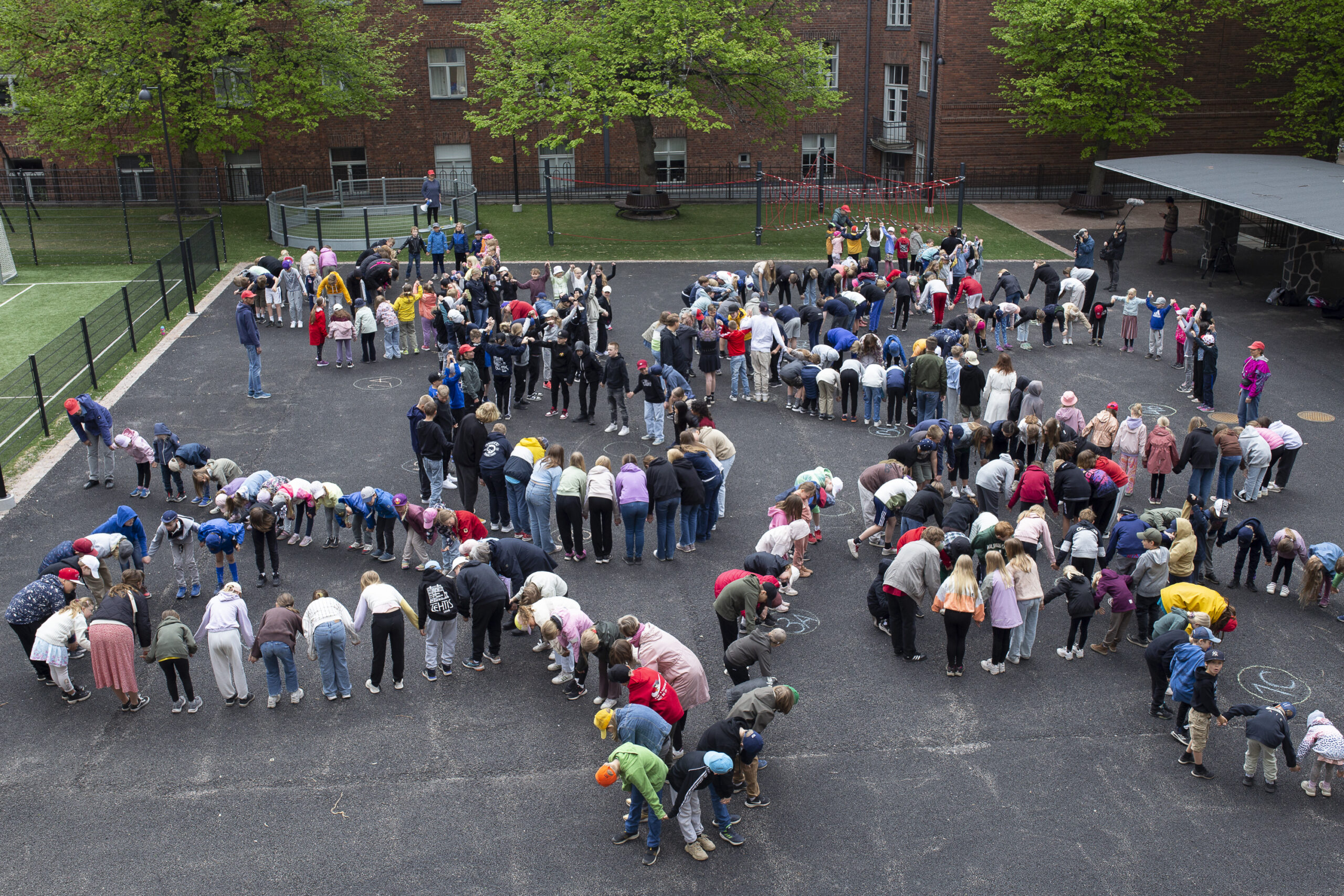 Toisissa tiloissa collective: Rhizome, 2020–2023. Photo: HAM/Viljami Annanolli Rhizome Artist Toisissa tiloissa collective Tehtaankatu Primary School, Tehtaankatu 15-17, 00140 Helsinki Indoor Sculpture Limited access: the work is available to view for the users of the premises only. Rhizome is based on a series of experiential and physical workshops organized for schoolchildren by Toisissa tiloissa collective between 2020 and 2023. The workshops explore the concept of rhizome from various perspectives and themes, such as mycelium, the internet, electricity grids and language formation, introducing pupils to non-hierarchical modes of thinking, learning and organization. During the workshops, the participants are co-developing a new learning praxis for the entire school that can be further explored by future generations of learners. Through collective and bodily exercises, the participants are introduced to modes of existence that are foreign to humans. Visiting “other spaces” momentarily liberates the participants from the confines of the human body and the human realm of experience. The project concept, video documentation, documentary photos and new learning praxis co-developed with the pupils will be accessioned to the City of Helsinki’s art collection, which is managed and curated by HAM. Artists: Sanni Priha, Minja Mertanen, Timo Jokitalo, Eeva Kemppi, Johanna Etelävirta, Kati Korosuo, Kaisa-Liisa Logrén, Heli Mäkinen, Anu Nirkko and Jaakko Ruuska. At map