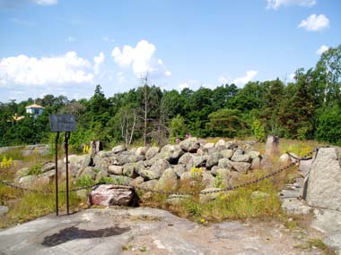 Bronze-age burrow grave in Helsinki. © Photo: HAM Helsinki Art Museum Pronssikautinen hauta / Bronze-age burrow grave Artist Unknown Humallahdenpuisto, Meilahti, Helsinki This bronze-age (some 3000 year-old) burrow grave is located in the Humallahden puisto park near the crossing of Seurasaarentie and Paciuksenkatu streets. The grave, made by piling stones, has been excavated and human bones were found inside. A plaque has been placed by the grave, explaining its history. At map