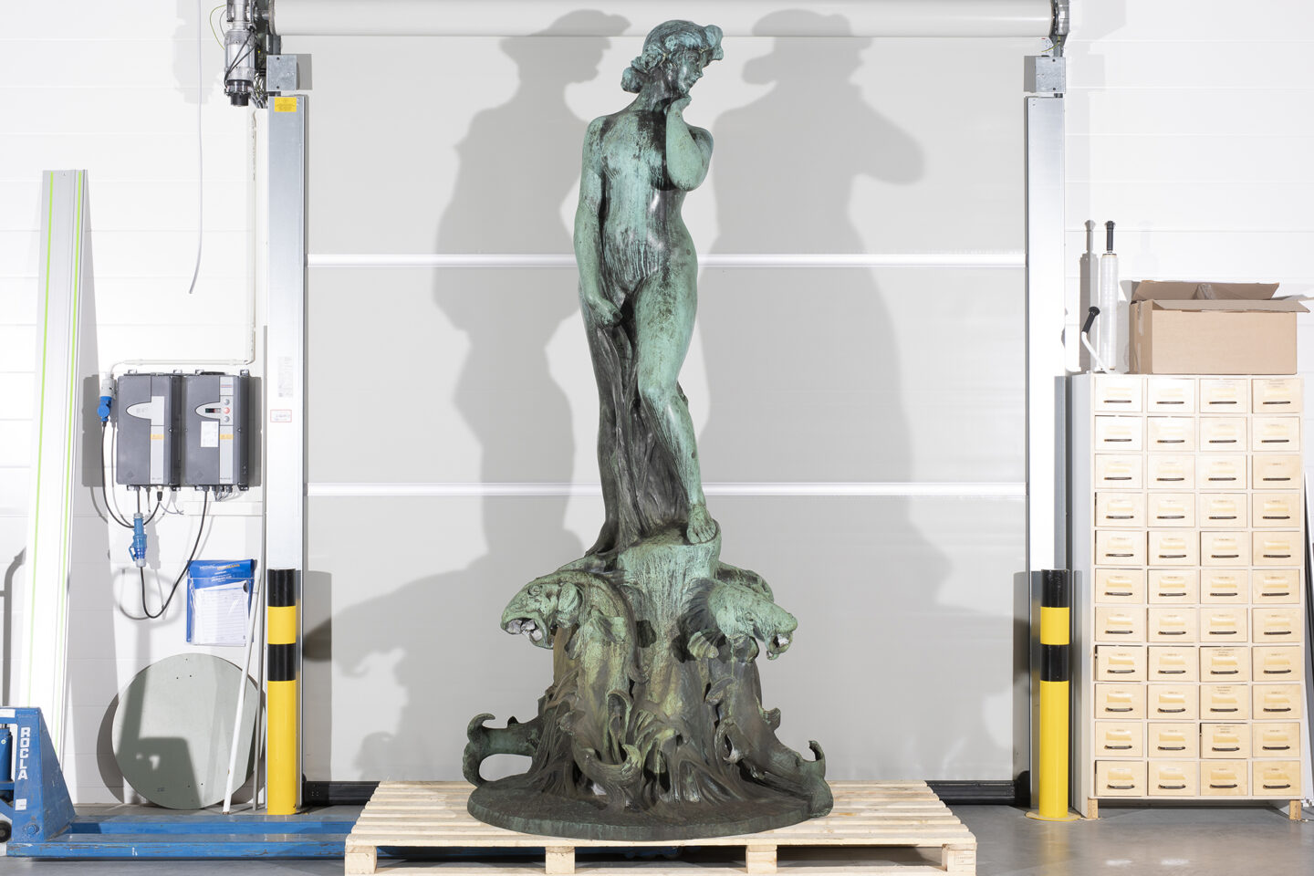 The surface restoration process involved removing the layers of dirt, air pollution and calcification that had accumulated on the surface of the sculpture over a century. The blue-green patina was also tidied up in order for the details of the sculpture to be more prominent. At the end of the process, the surface of the sculpture received a layer of protective wax.