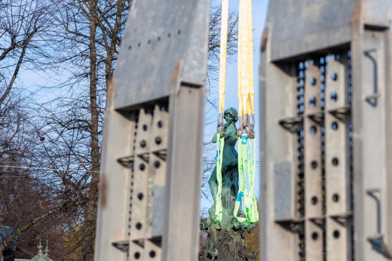 Havis Amanda siirretään konservoitavaksi. Kuva: Pekka Vyhtinen / Helsingin kaupunginmuseo.