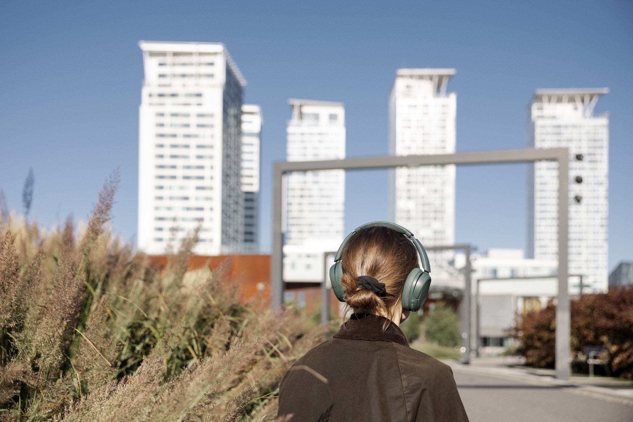 Foto: HAM/Kerttu Malinen 25/7 Konstnär Flis Holland Fiskehamnsparken, Helsingfors I Fiskehamnsparken kan man få höra ett ljudverk som tar sina lyssnare till Fiskehamnens parallella verklighet. I konstnären Flis Hollands ljudverk 25/7 föreställer man sig ett experiment i sci-fi-anda i vilket invånarna i Fiskehamnen har försetts med ett implantat. Syftet är att erbjuda de boende i Fiskehamnen en extra timme per dygn, men det börjar uppstå funktionsstörningar i implantatet. Verket refererar till Fiskehamnen som ett försöksområde för smarta stadsinnovationer. Flis Holland blev intresserad av löftet från statsägda innovationsföretaget Forum Virium att med projektet Fiksu Kalasatama/Smarta Fiskehamnen ge invånarna i Fiskehamnen en timme mer om dagen genom att utnyttja smarta urbana tekniska lösningar. I verket tolkas det här löftet bokstavligen. De boende i Fiskehamnen övergår till att leva efter en 25-timmars rytm, medan övriga Helsingforsbor fortsätter att leva efter en 24-timmars rytm. I verket får vi lyssna på glimtar av samtal mellan boare i Fiskehamnen och boare i andra stadsdelar, där tidsskillnaden orsakar en del digitaliska störningar. Situationen erbjuder ett lekfullt sätt att utforska vad en människa skulle göra om hon fick en extra timme. Samtidigt väcker den frågor om vem som har möjlighet att få en sådan värdefull extraresurs och vad som händer när sinsemellan olika framtidsperspektiv kolliderar med varandra. I verket utforskas människor vars tidsupplevelse är i otakt med det som anses vara det normala, så som neurodivergenta eller kroniskt sjuka människor. Med sitt verk vill konstnären också lyfta fram normerna för hur tid används och upplevs. Kompositören Juuli Haverinens och ljuddesign spelar en stor roll i verket och baserar sig på fältinspelningar i Fiskehamnsparken. Verket har förverkligats tillsammans med av 16 röstskådespelare. Man kan lyssna på verket på finska och engelska via applikationen Echoes, och det använder sig av geolokalisering. Ljudverkets olika scener är placerade längs vägen genom Fiskehamnsparken samt dess omedelbara närmiljö. Du kan lyssna på verket genom att gå till www.flisholland.com/257 på din mobiltelefon och ladda ner applikationen. Du kan också använda QR-koden som finns på verksskylten. Den hittar du i den ände av Fiskehamnsparken där Redi ligger, vid portalen som inramar vägen. Du kan välja att lyssna på scenerna i vilken plats du vill, även på distans. Transkriptioner av samtalen kan hittas på applikationen. I sin konst iakttar Flis Holland (UK/FI) sammanstötningarna mellan neurodivergenta, trans-, och himlakroppar. Hens verk består ofta av videor, applikationer eller ljudguider. Genom att skapa en känsla av kroppens närvaro utan att visa upp den, söker hen motverka den visuella dominansen och traditionen av kategorisering. Holland har en Master’s in Fine Art (MFA) och en Master’s in Aerospace Engineering & Astronautics. Verket hör till Helsingfors stads konstsamling, som förvaltas och kurateras av HAM. At map