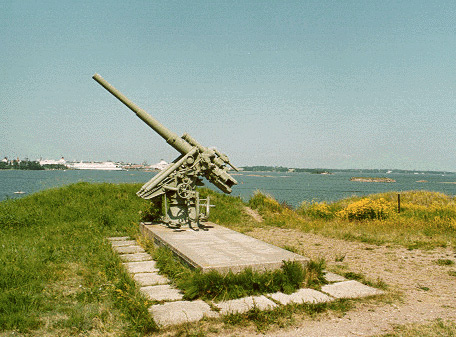 Luftvärnsbatteriet på Sveaborg bestod bl.a. av 1. Rask.It.Ptri MUSTA som var beväpnade med fyra dylika luftvärnskanoner som försvarade Helsingfors under vinterkriget och II världskriget.