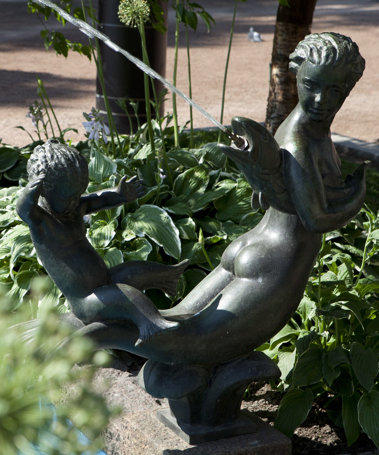 Viktor Jansson: Vattennymfer / Lek II, 1940. Foto: HAM / Kerttu Malinen Vattennymfer / Lek II Konstnär Viktor Jansson Kapelesplanaden, Kaartinkaupunki, Helsingfors Vattennymfer är en av Viktor Janssons fem fontäskulpturer från 1940-44. Vattennymferna, som också är känd under namnet Lek II beställdes av Helsingfors stad och har prytt den lilla vattenbassängen vid Esplanadkapellet sedan 1942. Skulpturen avbildar två vattennymfers eller sjöjungfrurs lek med en fisk på vågorna. Skulpturen är gjuten i brons och 115 cm hög. Formspråket är elegant klassicism. Viktor Janssons (1886-1958) dotter Tove stod modell för den större sjöjungfrun. Verket hör till Helsingfors stads konstsamling, som förvaltas och kurateras av HAM. At map
